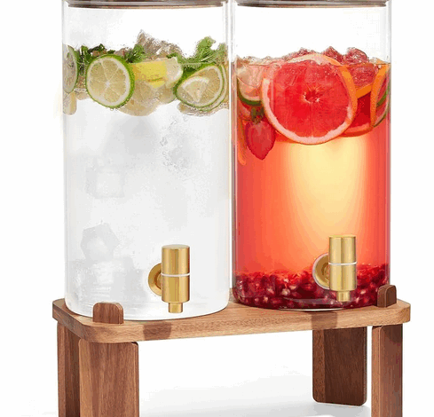 Glass Beverage Dispenser With Wood Stand