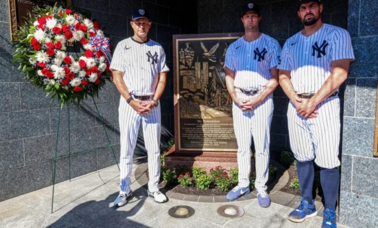 The New York Yankees continued their annual tradition of honoring the victims of the September 11, 2001 terrorist attacks by placing a wreath on the monument in Monument Park. Manager Aaron Boone, along with pitchers Gerrit Cole and Carlos Rodón, took part in the ceremony before the Yankees’ 9-3 victory over the Tigers at Yankee Stadium.