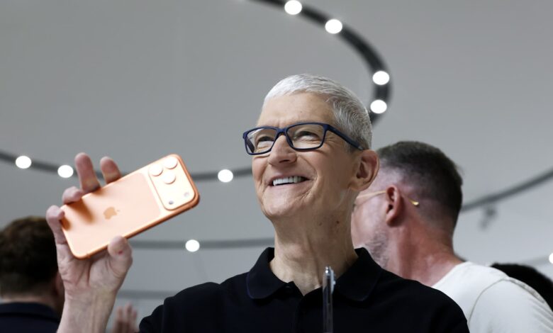 Apple CEO Tim Cook unveils the next generation iPhone 17 during a special event at Apple headquarters on Sept. 9, 2025 in Cupertino, California.