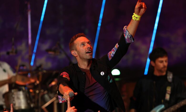 Chris Martin of Coldplay performs at the O2 Shepherd’s Bush Empire on October 12, 2021 in London, England.