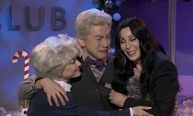 Bowen Yang’s emotional final sketch on Saturday Night Live brought tears to his eyes as he bid farewell to the show with the help of Ariana Grande and Cher. The holiday travel-themed sketch featured Grande and Cher serenading Yang with the classic “Please Come Home for Christmas” as he played a Delta Sky Club employee on his last-ever shift. As the trio sang, both Yang and Grande became emotional, eventually breaking down in tears as they hugged.