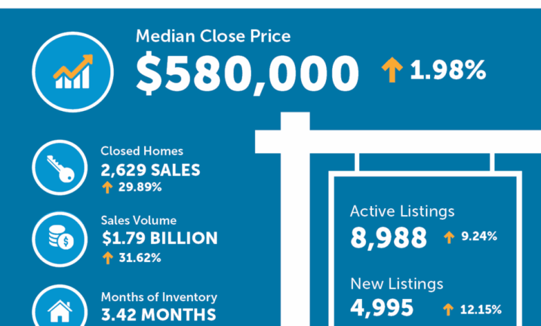 The days homes spent on the market decreased significantly, with a 30% drop for attached homes and a 40% drop for detached homes. Closed sales also saw a nearly 30% increase, with the close-price-to-list-price ratio reaching 98.7%, indicating strong demand.