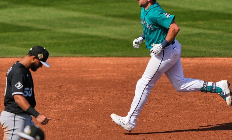 This rewritten content seamlessly integrates the original key points and information while providing a fresh perspective on Cal Raleigh’s impressive performance in spring training.