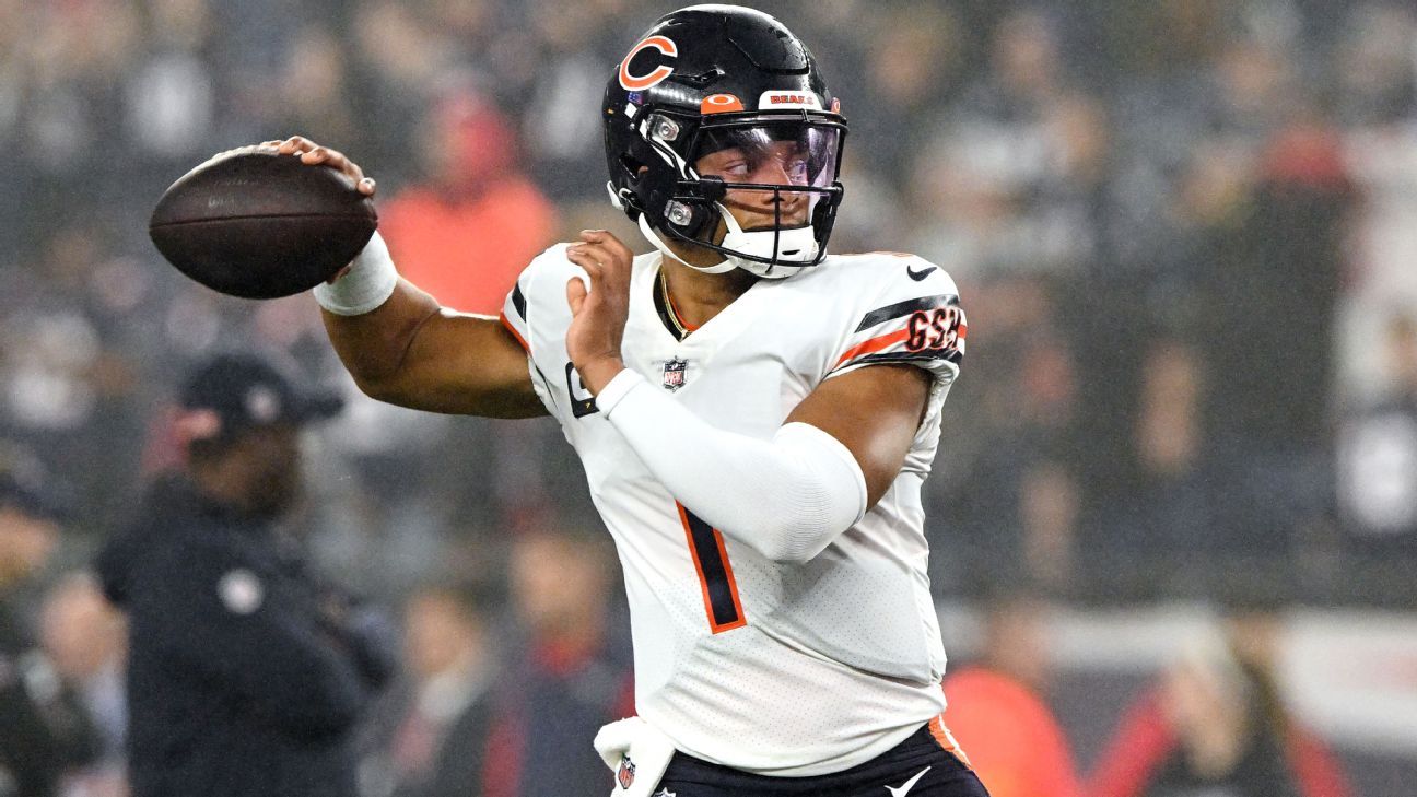 Eye-popping stat: Fields is one of two players in the past 30 seasons to have more than 100 passing yards and 70 rushing yards along with at least one passing and rushing touchdown in an opening half, according to ESPN Stats & Information research. The last player to do so was Russell Wilson in 2014.