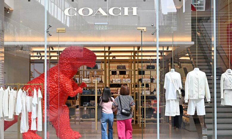 People visit the US luxury brand Coach store at a shopping mall in Beijing.