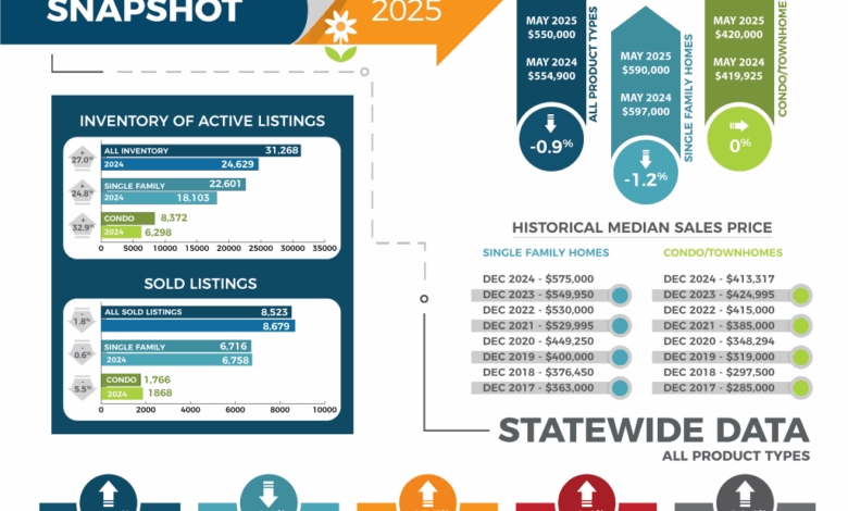 Statewide, the median price of single-family homes dropped by 1.5% to $590,000 from April to May, and it is also down 1.2% from the previous year. On the other hand, condo and townhome median pricing increased by 3.3% to $420,000 from April to May, returning to the same level as the previous year.