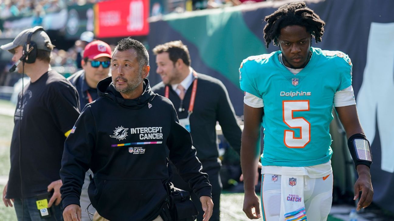 He was ruled out after roughly 40 minutes in the locker room. Rookie seventh-round pick Skylar Thompson is the only quarterback remaining on the Dolphins’ active roster.