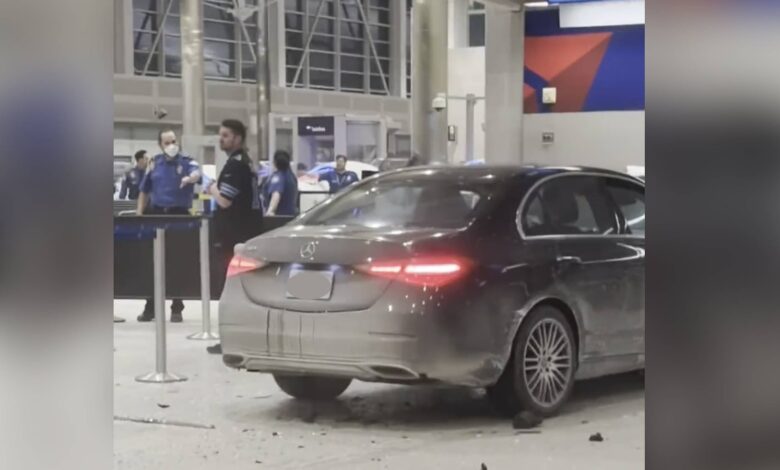 Driver in custody after car crashes into Detroit airport terminal
