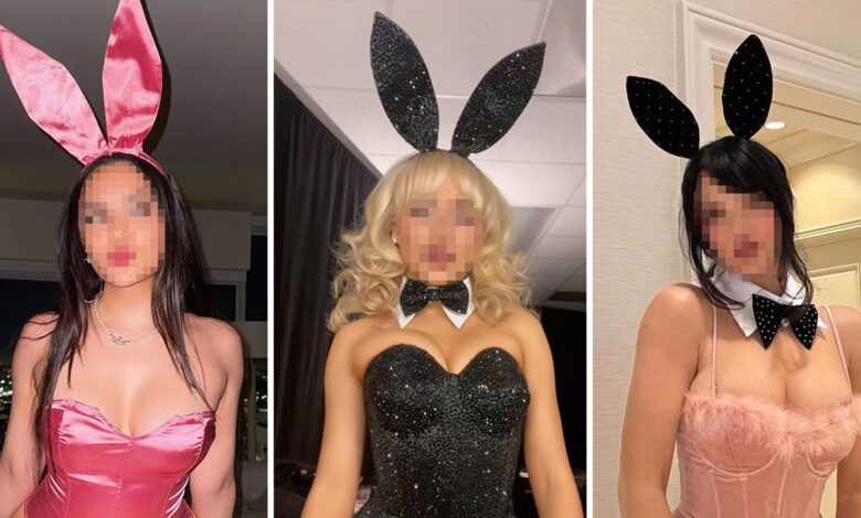 In the image gallery above, you’ll see three celebrities dressed up as seductive bunnies. Can you guess who they are? On the left, we have the sexy sister of a former Disney darling. On the right, a reality star who loves to flaunt her bunny tail. And in the middle, the curtain bangs are a dead giveaway for the short and sweet singer.