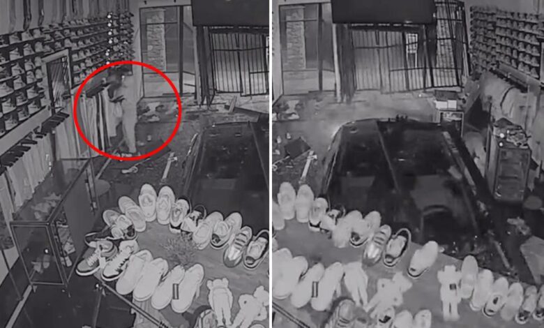 A shocking incident unfolded early Thursday morning at Restock Ave, a shoe and streetwear store in Phoenix, Arizona. Surveillance footage captured the moment a hooded thief crashed a stolen car into the store, causing chaos and destruction as he made off with stolen merchandise in a brazen smash-and-grab robbery.