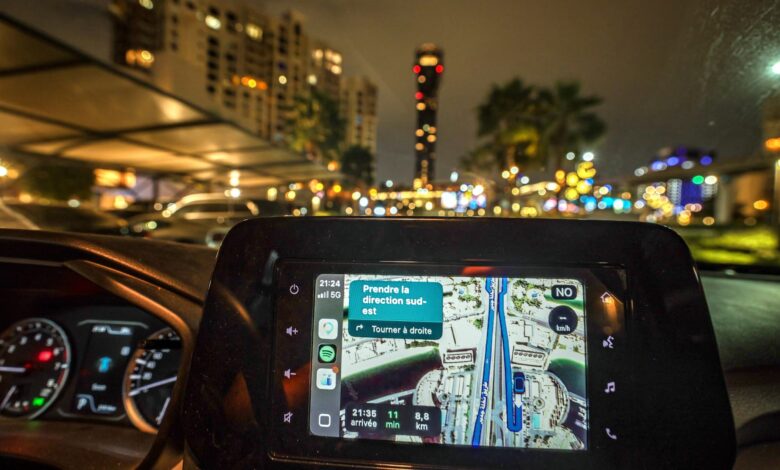 The screen of a GPS attached to the dashboard of a vehicle as residents of Dubai face GPS disruptions on March 9, 2026, in Dubai. The United Arab Emirates decried that it was being targeted “in a very unwarranted manner” in the war, stressing it would “not partake in any attacks against Iran”, which has lashed out at Gulf countries seen as US allies. (Photo by AFP via Getty Images)