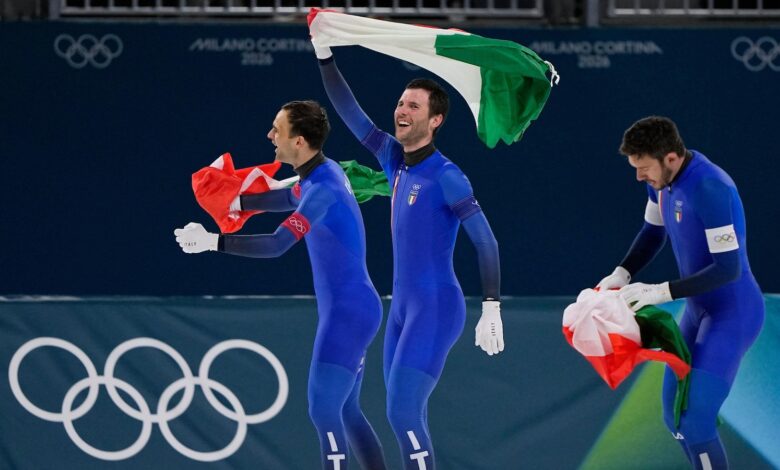 Italy’s men and Canada’s women win the Olympic team pursuit speedskating gold medals