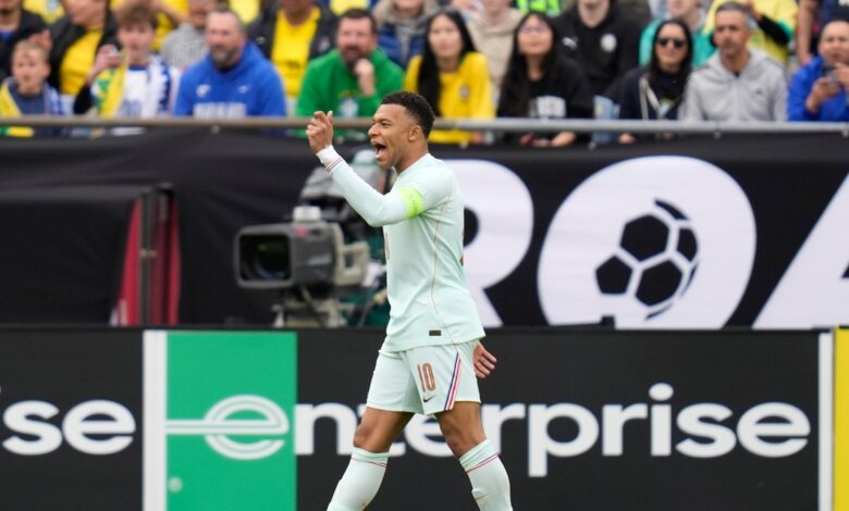 Kylian Mbappé shakes off knee injury and sparks France’s 2-1 World Cup tuneup win over Brazil