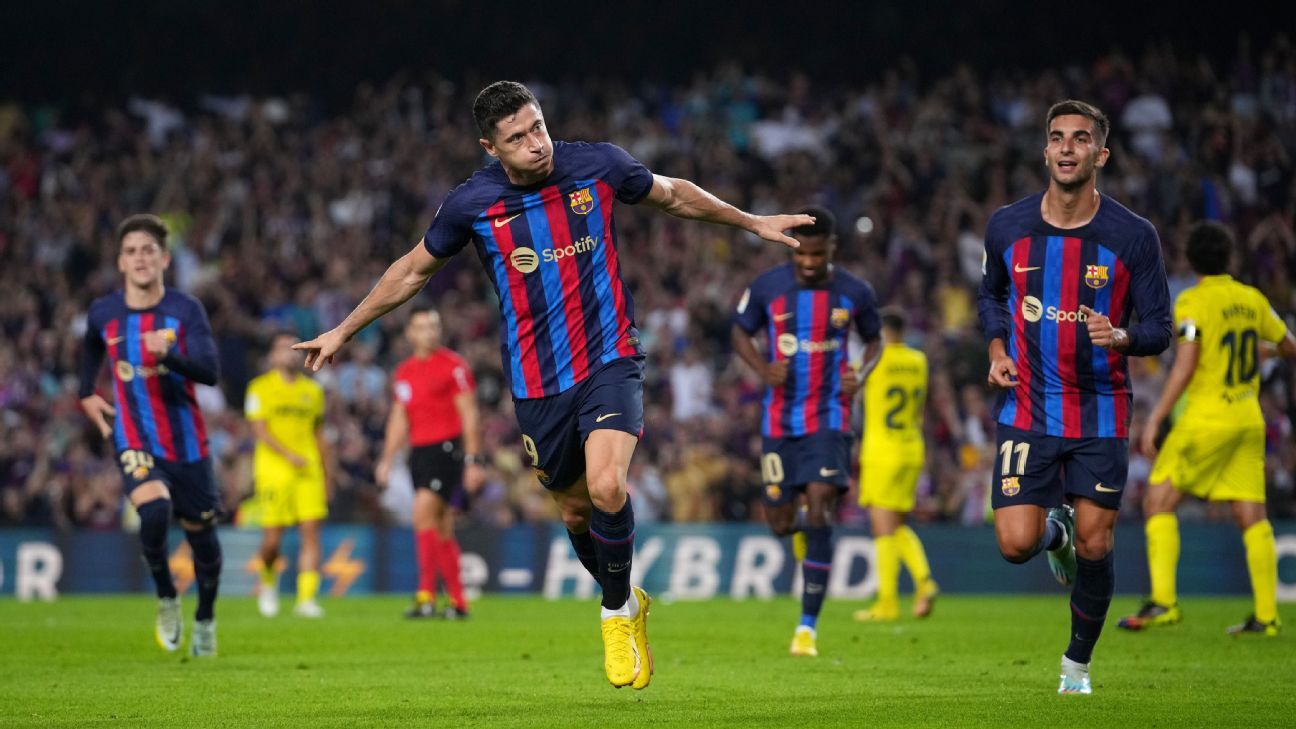 Lewandowski scores twice as Barcelona beat Villarreal
