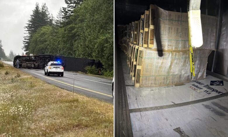 Semi-truck transporting 10,000 bottles of whiskey tips over — but doesn’t spill a drop