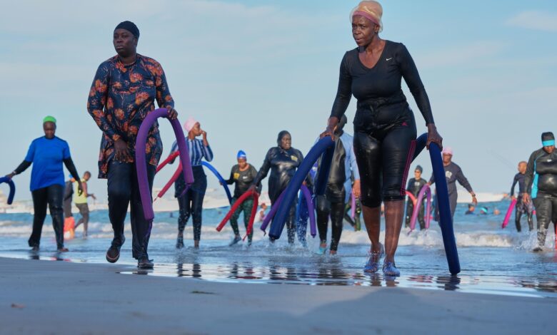 DAKAR, Senegal — The sun has not yet risen in Senegal’s capital, Dakar, but about 100 people in swimsuits and life jackets already crowd a section of beach, ready for aquagym class.