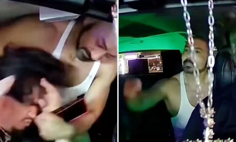 Shocking moment tank top wearing thug batters Uber driver, demands he drive