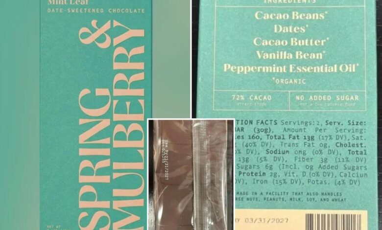Consumers are advised not to consume the affected chocolate bars and to dispose of them. Refunds can be obtained by contacting Spring & Mulberry via email, according to the FDA.