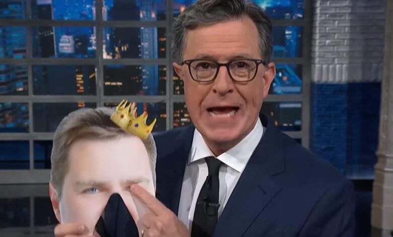 In a hilarious twist, Colbert introduced a new character called “Wittle Pwince Vance,” complete with a baby voice and a mask of Vance’s face wearing a crown. Mocking Vance’s entitled behavior, Colbert joked about ridiculous demands for his birthday celebration. He even playfully called out for offers from other networks, jokingly mentioning Netflix and Amazon as potential suitors once “The Late Show” concludes in May 2026.