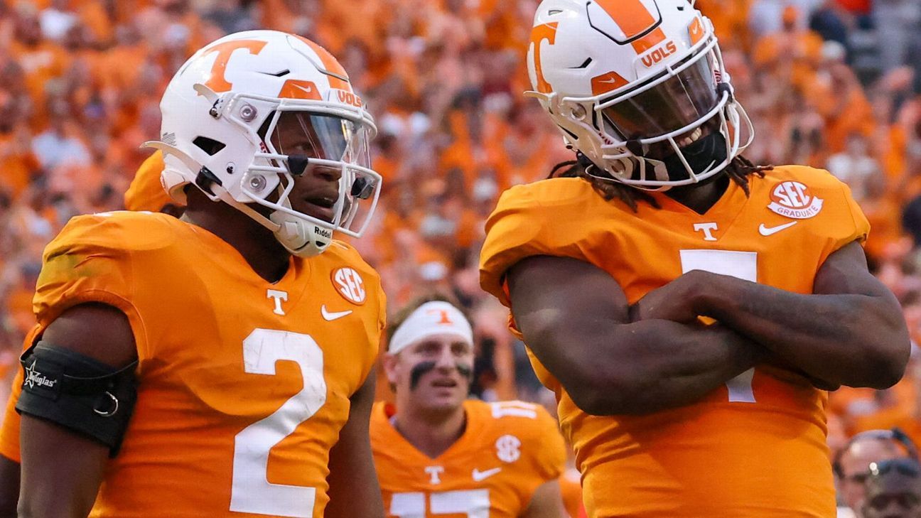Tennessee, which is averaging 49 points per game and leads the FBS in total offense, became the seventh different program to earn the top spot at any point in the playoff era. The Vols entered Tuesday’s initial ranking ranked No. 1 in ESPN’s Strength of Record metric with the best win in the country, against No. 6 Alabama.