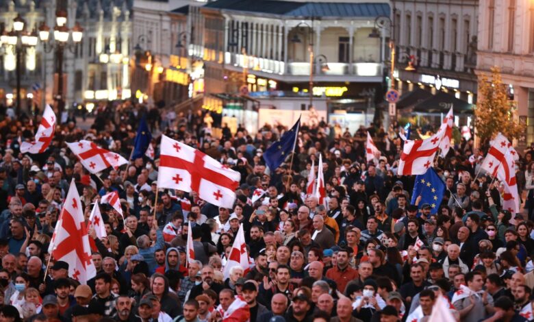 Tens of thousands march against Georgia’s government as local election snubbed by opposition held