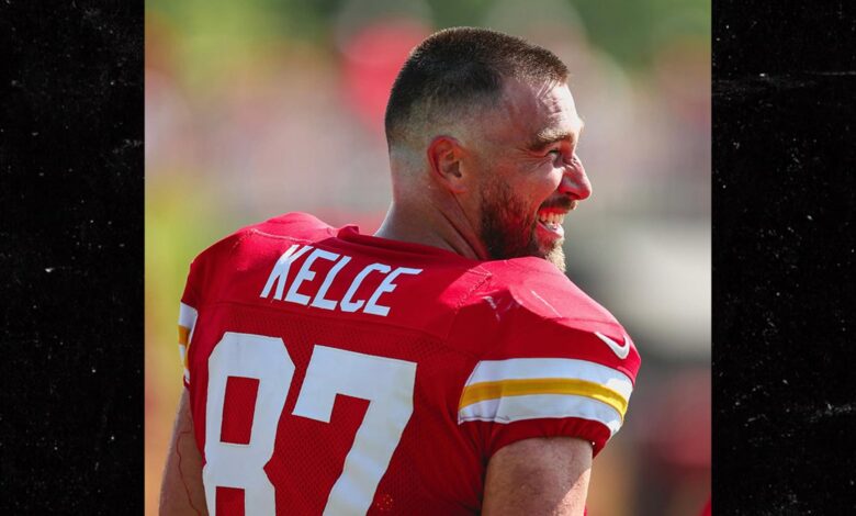 Travis Kelce shed a few pounds at training camp already … ’cause he went from flowing locks back to his normal shaved head for the upcoming season!