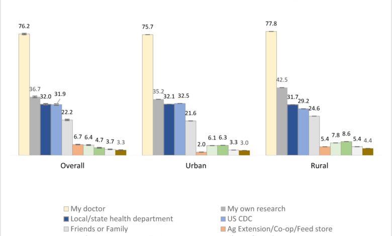Interestingly, both urban and rural residents reported similar levels of trust in doctors. However, rural respondents were found to be somewhat older, less likely to have private insurance, and more likely to be Republican or white. This information can help public health officials tailor their communication strategies to effectively reach diverse communities.