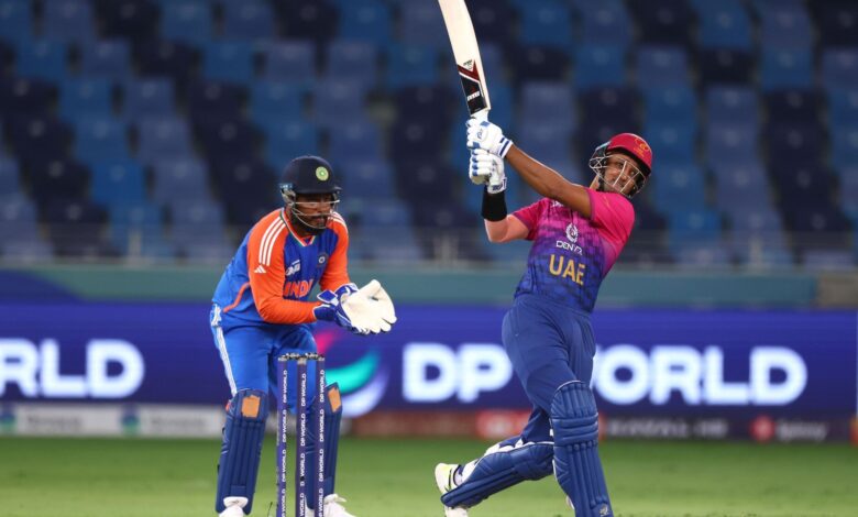 Captain Suryakumar Yadav won the toss and elected to bowl first. UAE opener Alishan Sharafu looked promising, scoring 22 runs off 16 deliveries before being cleaned up by Jasprit Bumrah with a yorker in the fourth over. In the next over, Chakaravarthy struck again, dismissing Zohaib for just two runs.