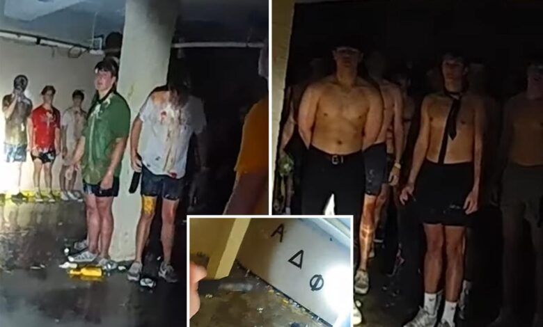 Viral disturbing bodycam footage shows dozens of shirtless, blindfolded University of Iowa pledges covered in food in frat basement