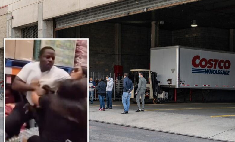 Wild video shows man punch fellow shopper, knocking him to the ground in brawl over shopping cart in NYC Costco